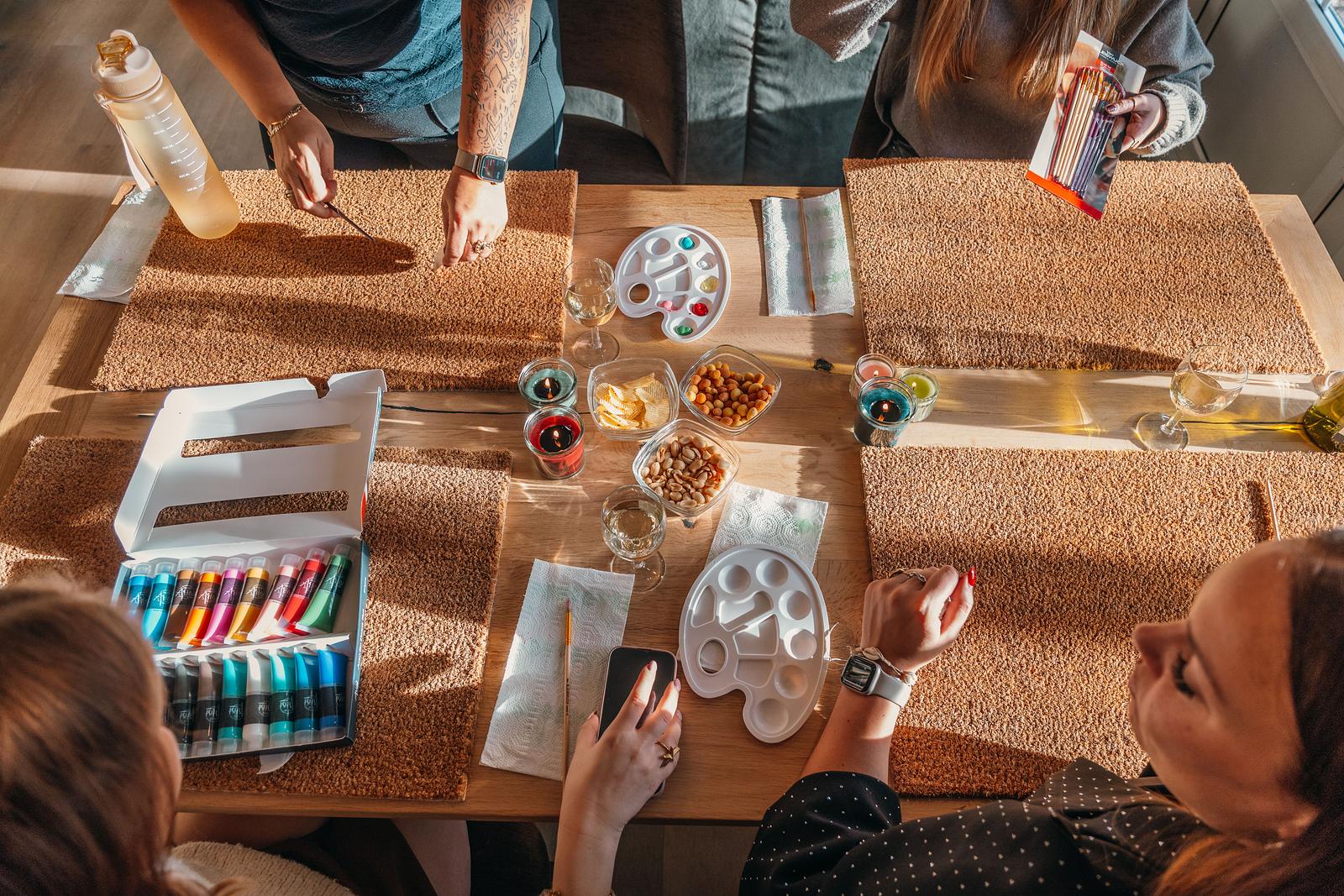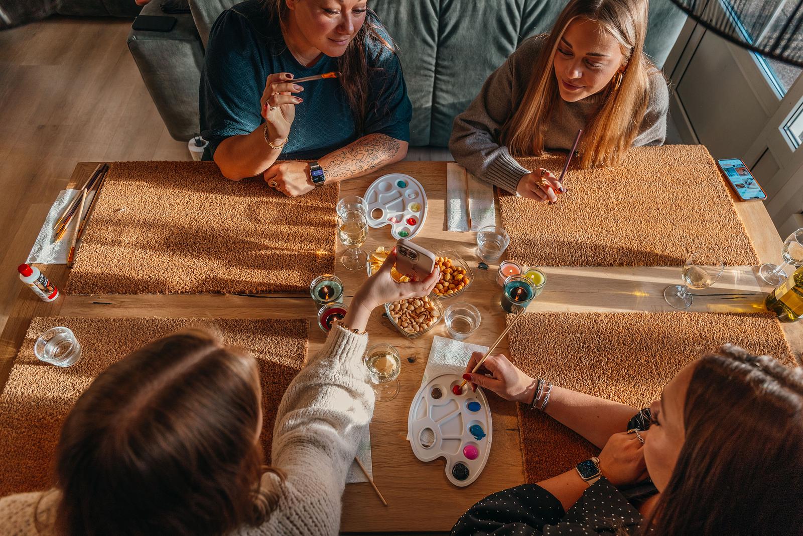 Wil je het extra gezellig maken? We bezorgen bijvoorbeeld een kaasfondue of pizzarette bij je accommodatie. Of ga creatief aan de slag met onze DIY-pakketten, waarmee je bijvoorbeeld een deurmat of borrelplank zelf kunt beschilderen. Zo wordt jullie vriendinnenweekend nog zorgelozer en leuker.